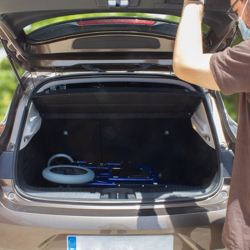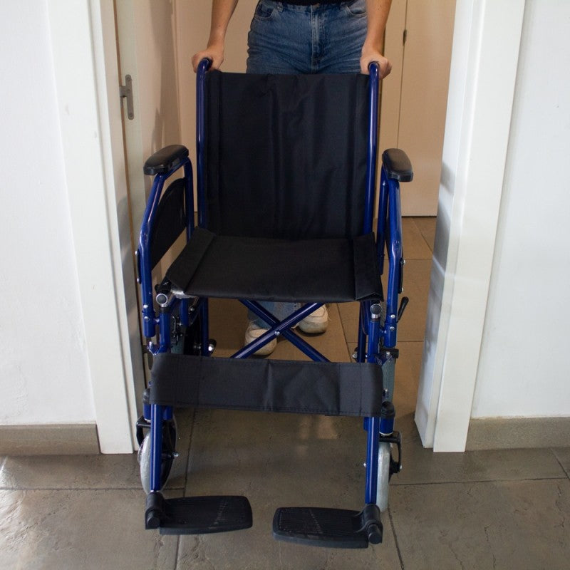 PUERTAS Y MALETERO: Esta silla de ruedas tiene un ancho total de 60,5 cm, por lo que puede pasar por puertas de ancho estándar de 62.5 cm. Además como esta silla plegada mide sólo 28,5 cm, se puede transportar en el maletero de un vehículo tipo Ford Focus. Asegúrese de las medidas de sus puertas y vehículo para comprobar que le viene bien.