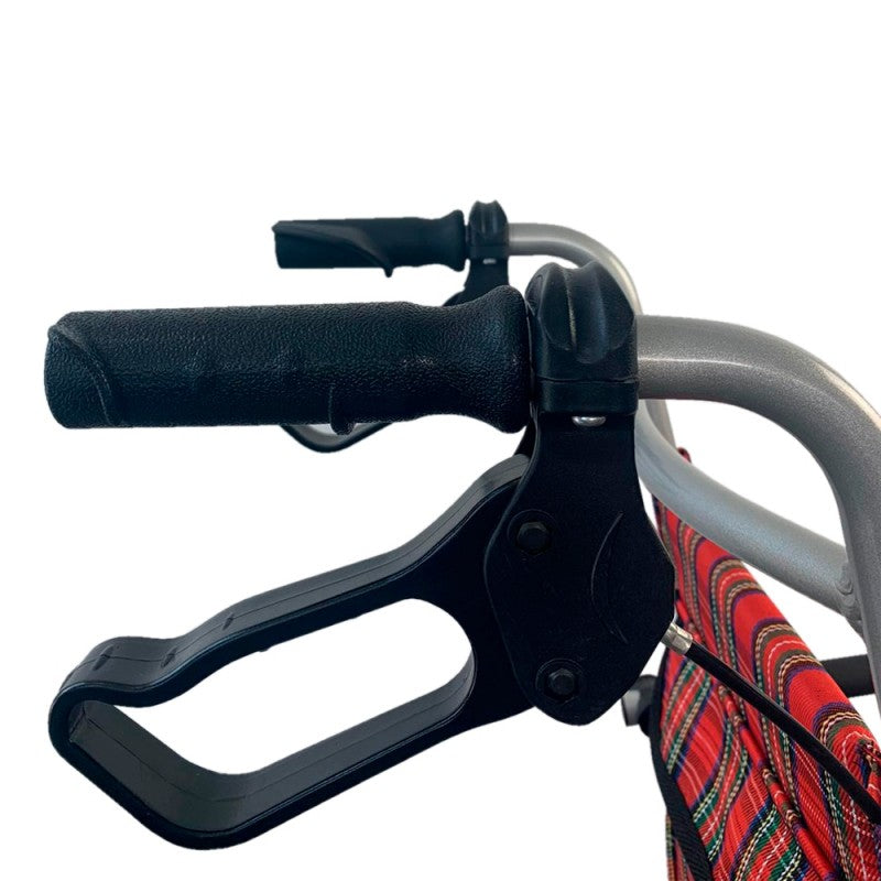 BLOQUEO: Si se necesita inmovilizar por completo la silla de ruedas, hay que tirar de las manetas de los frenos hacia abajo y las ruedas quedarán bloqueadas. Para desbloquear hay que tirar de las manetas hacia arriba.