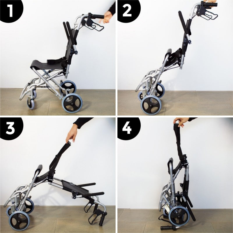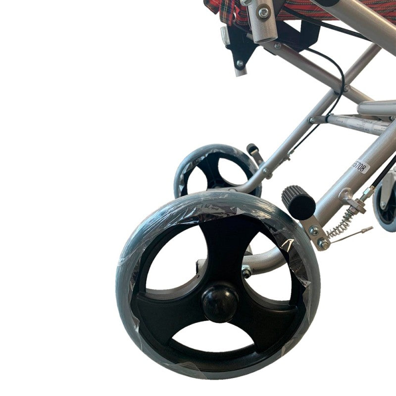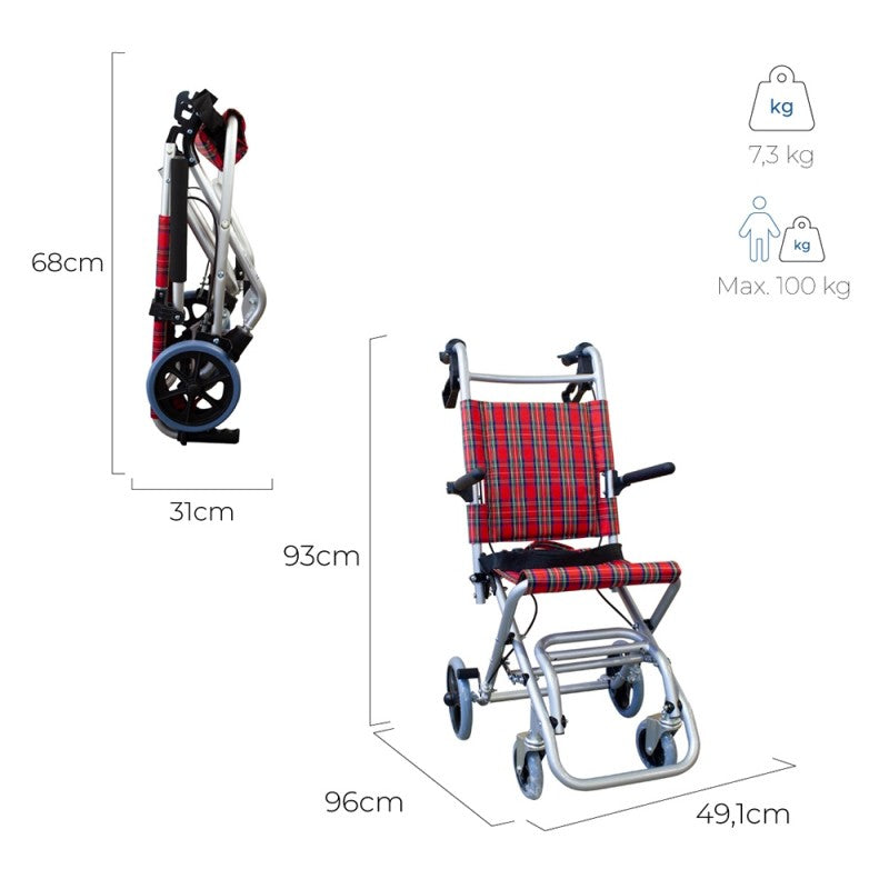Gracias a su fácil plegado y ligereza es posible transportarla a cualquier lado con el mínimo esfuerzo (además incluye bolsa para transporte). La silla de ruedas plegable permite poder guardarla de forma cómoda en casa o incluso plegarla si la necesitas meter en lugares estrechos.