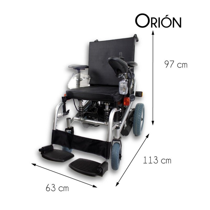 https://www.fisiomarket.com/products/38471-silla-de-ruedas-electrica-orion 9017413206275 Silla de ruedas eléctrica Orión ¿MIEDO A COMPRAR UNA SILLA DE RUEDAS ELÉCTRICA POR INTERNET? Este problema se acabó. Llámanos y aclararemos tus dudas. ¿No sabes cómo usar, montar, plegar, mantener tu silla de ruedas eléctrica? ¡Contacta con nosotros, estamos a tu disposición!RUEDAS COMPACTAS: las ruedas de la silla eléctrica minusválido Orión son macizas y resistentes, que le ayudarán a evitar pinchazos innecesarios.BATERÍA Y AUTONOMÍA: la silla de ruedas eléctrica modelo Orión cuenta con dos baterías de gel 12V/32AH (384W) recargables. Además, su autonomía le permitirá recorrer hasta 30 km.SEGURIDAD: la silla de ruedas eléctrica cuenta dispositivos de seguridad tales como un sistema de 4 amortiguadores que reducen las irregularidades del terreno y un cinturón de seguridad para garantizar la estabilidad del usuario.ADAPTABLE: esta silla de ruedas de acero es adaptable a las necesidades que requiera el usuario, pues sus reposapiés son extraíbles y plegables, dispone de un asiento acolchado y reclinable hasta en 4 posiciones y cuenta con un bolsillo en la zona posterior para almacenar sus pertenencias.LIGERA: el peso total de la silla de ruedas eléctrica es de 65 kg (incluidas las baterías). Su peso sin baterías es de 42 kg. Además, esta silla de ruedas es capaz de soportar hasta un máximo de 120 kg.ACCESIBLE: Esta silla de ruedas tiene un ancho total de 63 cm, por lo que puede pasar por puertas de ancho estándar de 72.5 cm. Asegúrese de las medidas de sus puertas para comprobar que le viene bien.¿Estas pensando en comprar una silla de ruedas eléctrica?La silla eléctrica de acero modelo Orión garantiza la independencia del usuario en su día a día mejorando así su calidad de vida. Es una silla con motor recomendada a personas con movilidad reducida o personas mayores.Gracias a su sistema de amortiguación, esta silla de ruedas automática es capaz de superar los obstáculos del camino y es ideal para usarla en lugares cerrados y en exteriores.Estas sillas eléctricas para ancianos ofrecen una adaptación a las necesidades del usuario de forma inigualable, sus reposapiés son extraíbles y plegables y cuenta con un asiento reclinable, hasta en 4 posiciones, acolchado y con un bolsillo posterior para guardar las pertenencias.Para una gran seguridad dispone de ruedas macizas de gran resistencia al desgaste y pinchazos, cinturón de seguridad, ruedines traseros antivuelco y luz delantera e intermitentes delanteros y traseros.El Joystick de la silla puede ser cambiado de un lado al otro. Solo es necesario emplear un destornillador para instalarlo en el lado deseado.Características técnicas de la silla de ruedas con motor:Velocidad máxima: 6 km/h.Pendiente máxima: 8º.Puede subir bordillos de hasta 2,80 cm de altura.Dispone de marcha atrás.Cinturón de seguridadReposapiés: extraíbles y plegables.Reposabrazos: abatibles.Baterías:Baterías: 2 (12V/32AH) = 384WBatería de gel.Tiempo de carga: 8 horas.Autonomía: 30 km.Puerto de carga bajo el mando de control (joystick).Medidas:Medidas generales (alto x ancho x longitud): 97 x 63 x 113 cm.Peso máximo soportado: 120 kg.Peso sin baterías: 42 kg.Peso con baterías: 65 kg.Ancho de asiento: 46 cm.Largo asiento: 41 cm.Alto respaldo: 43 cm.Profundidad asiento: 41cm.Reposapiés: 35 cm.Distancia desde el suelo al asiento: 53 cm.Distancia desde el suelo al Joystick: 79 cm.Medidas estándar, NO ADAPTABLES.Ruedas:Diámetro rueda trasera: 12, 30 cm.Diámetro rueda delantera: 8, 20 cm. La silla de ruedas eléctrica nos gusta por: Su seguridad: está equipada para ofrecer una gran seguridad al usuario.Su duración: dispone de una batería de larga duración.Su comodidad: cuenta con materiales adaptados para un mayor confort.Garantía: 3 añosCondiciones de devolución:En caso de devolución, el producto deberá ser entregado en las mismas condiciones de embalaje con las que le llegó. La garantía solo cubre los defectos de fabricación, no cubre los golpes, arañazos o desperfectos causados por un uso inadecuado de la silla.Las sillas de ruedas eléctricas no tienen devolución una vez activadas las baterías, salvo en caso de incidencias por defectos de fabricación.Ficha técnicaDimensiones caja64cm x 80cm x 64cmPeso caja72000gCódigos Ortoprotésicos Cód. Ortoprotésico Cantabria SRE 000A Cód. Ortoprotésico Castilla-La Mancha SRE 000A Cód. Ortoprotésico Extremadura SRE 000A Cód. Ortoprotésico Cataluña SRE 000A Cód. Ortoprotésico Castilla y León SRE 000A Cód. Ortoprotésico Madrid SRE 000A Cód. Ortoprotésico Canarias SRE 000A Cód. Ortoprotésico País Vasco SRE 000A Cód. Ortoprotésico Aragón SRE 000A Cód. Ortoprotésico Andalucía SRE 000A Cód. Ortoprotésico Asturias SRE 000A Cód. Ortoprotésico La Rioja SRE 000A Cód. Ortoprotésico Murcia SRE 000A https://www.fisiomarket.com/cdn/shop/files/55734.jpg?crop=center&height=300&v=1750526445&width=300 https://www.fisiomarket.com/cdn/shop/files/55734.jpg?crop=center&height=100&v=1750526445&width=100 1598.38 1598.38 0.0 0.0 instock Ayudas de movilidad Ayudas dinámicas iva10 Mobiclinic Movilidad Novedades Ortopedia Sillas de ruedas Sillas de Ruedas Manuales Todos los productos Todos los productos menos Electromedicina Movilidad Ortopedia Sillas de ruedas Mobiclinic 1674829205000