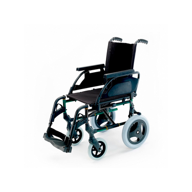 Silla de ruedas manual con robusta estructura de acero y ruedas macizas que proporcionan máxima seguridad. Compuesta de un asiento de nylon, reposabrazos con espuma de poliuterano y reposapiés abatibles. Perfecta para el tránsito por hospital de enfermos debido a su resistencia.
