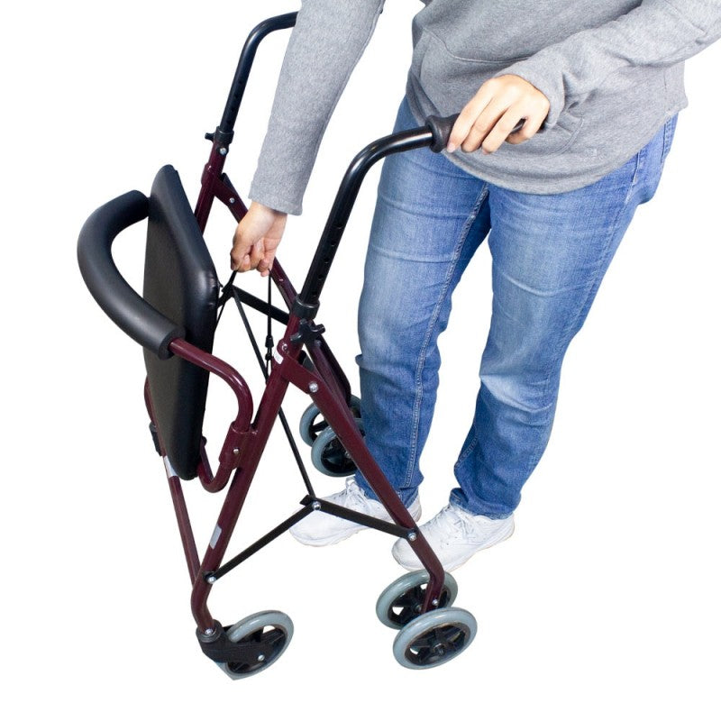 Respaldo acolchado, permite un descanso completo en tu andador con 4 ruedas, fundamental para reponer fuerzas.