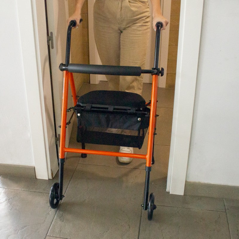 Este andador para adultos ofrece un alto grado de comodidad gracias a sus puños ergonómicos, su cesta y su respaldo blando garantizando así un mayor confort.