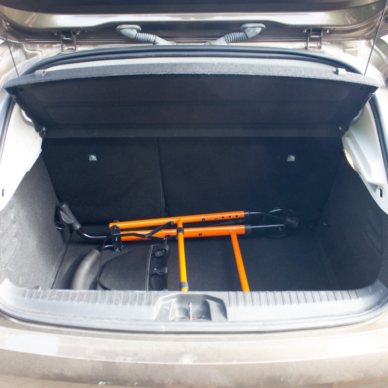 PUERTAS Y MALETERO: Este andador tiene un ancho total de 58 cm, por lo que puede pasar por puertas de ancho estándar de 62.5 cm. Además como este andador plegado mide sólo 15 cm, se puede transportar en el maletero de un vehículo tipo Volkswagen Polo. Asegúrese de las medidas de sus puertas y vehículo para comprobar que le viene bien.