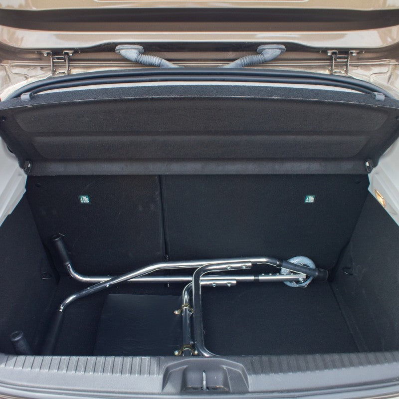 PLEGABLE: no tendrá que preocuparse de este andador a la hora de transportarlo o guardarlo, ya que, al tratarse de un andador plegable, se pliega muy fácilmente y ocupa el mínimo espacio (16.5 cm de ancho plegado)