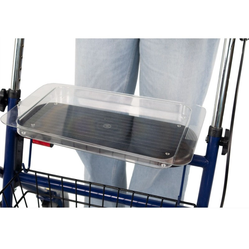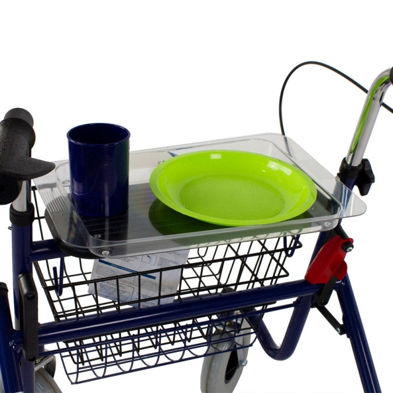 Este andador viene también con una bandeja portaobjetos, donde podrá transportas objetos ligeros que necesite tener a mano o trasladar, como una taza de te, un costurero, un libro, entre otros. Este bandeja trae unos salientes que encajan en las muescas de la base de apoyo para evitar que se deslice y, como la cesta, también puede quitarla cuando no necesite usarla.