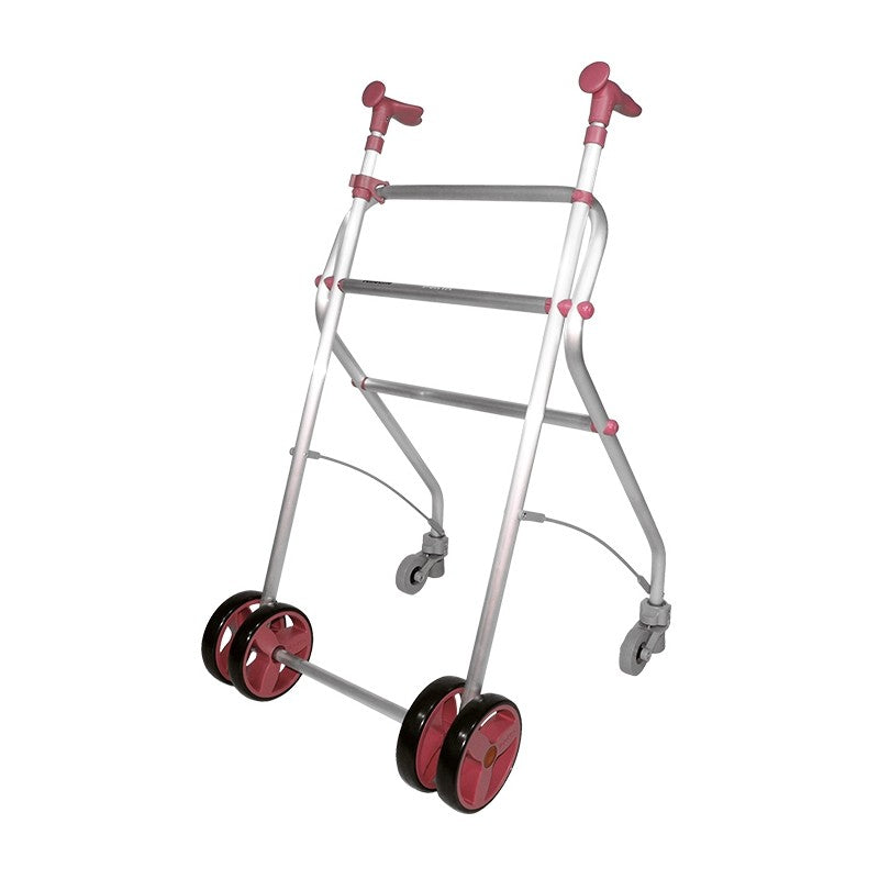 Andador Plegable para adultos Rollatino. Aluminio. 4 ruedas. Color Coral. Forta