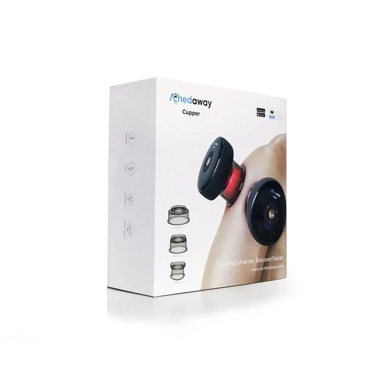 El par Achedaway tiene la misma funcionalidad que una sola unidad, el único factor diferencial es que son dos unidades en el interior con un estuche de transporte. El Achedaway Cupper tiene un gran impacto en la industria de la salud y el fitness debido a su concepto. El Achedaway Cupper deriva su concepto de las técnicas tradicionales chinas de ventosas. Ha perfeccionado su ventosa y succión dinámicas. Ha eliminado el uso de bombas manuales manuales que antes empleaban sus predecesores de ventosas tradicionales. Los Achedaway Cuppers ahora están siendo utilizados por masajistas, quiroprácticos, entrenadores, atletas, etc.