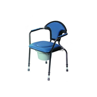 La silla habitación Agronda con inodoro y reposabrazos, color azul. Es un baño portátil ideal para las personas mayores, enfermos, ancianos o con