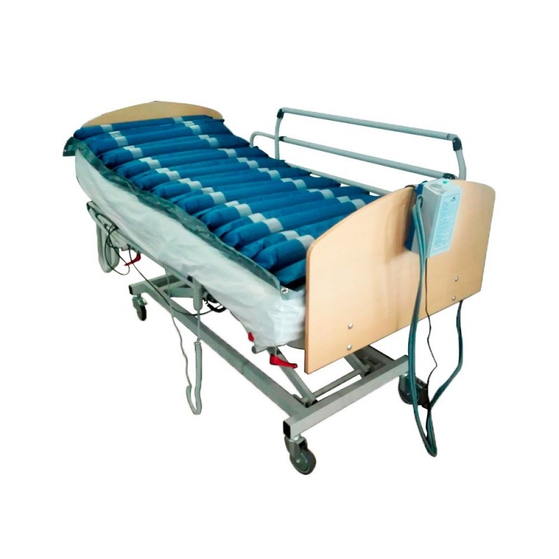 Este colchón antiescaras cuenta con alternancia de celdas y ajuste según el peso del paciente. Tiene 20 celdas, con un caudal de aire de entre 6 y 8 litros por minuto, recibiendo de esta manera el paciente un constante alivio de la presión, activando la circulación y previniendo la formación de escaras.