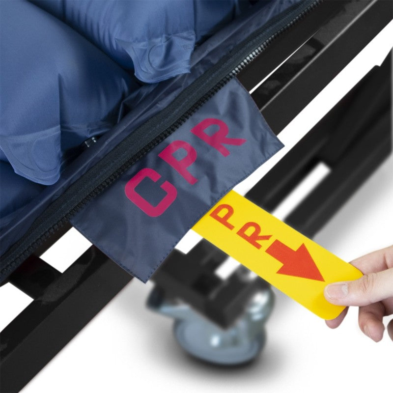El colchón de aire antiescaras incorpora unas correas de CPR para desinflar más rápido el colchón ortopédico en caso de emergencia.
