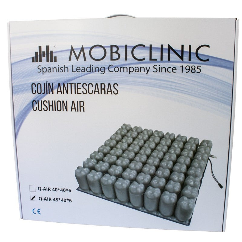Las celdas de aire de este cojín antiescaras permiten reducir la presión del cuerpo, facilitando la circulación sanguínea y evitando la formación de úlceras o escaras. Los cojines antiescaras de aire están especialmente diseñados para usuarios que tienen un riesgo elevado de padecer escaras al pasar la mayor parte de su tiempo sentados, como personas mayores y ancianos, en el caso de que el paciente se encuentre encamado también recomendamos un colchón antiescaras.