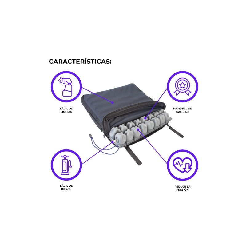 ERGONOMÍA: cojín antiescaras de aire que favorece una mejor postura y comodidad.