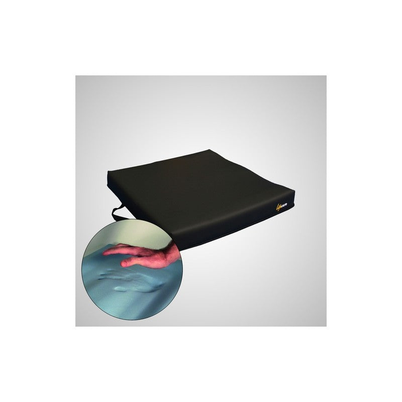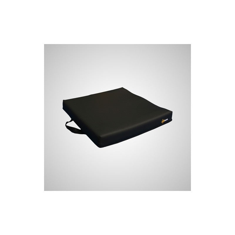 Cojín antiescara estetico, confortable, resistente y fiable con funda exterior lavable, antideslizante y con cierta resistencia al fuego. No desliza sobre el asiento. Se adapta con facilidad a las sillas de ruedas del mercado. Envasado en caja con asa para facilitar su transporte y almacenamiento. Perfil cuadrado. Está compuesto de material viscoelástico con memoria. Posee una elegante funda exterior negra, hidrófoba, antideslizante e ignífuga: retardante de llama, y transpirable, con apertura sencilla tipo cremallera en U y asa para facilitar su manejo. Extremadamente ligero y fácil de limpiar. Confortabilidad personalizada para cada usuario. Uso recomendable hasta 100Kg.
