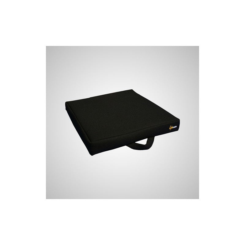 Este cojín antiescaras estetico, confortable, resistente y fiableviene con una funda exterior lavable, antideslizante y con cierta resistencia al fuego (ignífuga M1), que además trae un asa para facilitar su manejo. No desliza sobre el asiento y se adapta con facilidad a las sillas de ruedas del mercado. Envasado en caja con asa para facilitar su transporte y almacenamiento. Este cojín antiescara de perfil cuadrado está hecho de una espuma o foam de celda abierta por la que fluye un líquido viscoso. Basado en el "principio de flotación". Uso recomendable hasta 100Kg. Funda exterior con apertura sencilla tipo velcro.