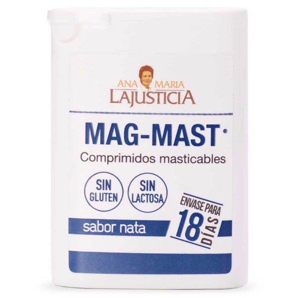 Mag-Mast es un antiácido natural compuesto por carbonato de magnesio con aroma a nata y sin azúcar. Tiene dos funciones principales: actúa como antiácido gástrico y aporta magnesio de forma natural.