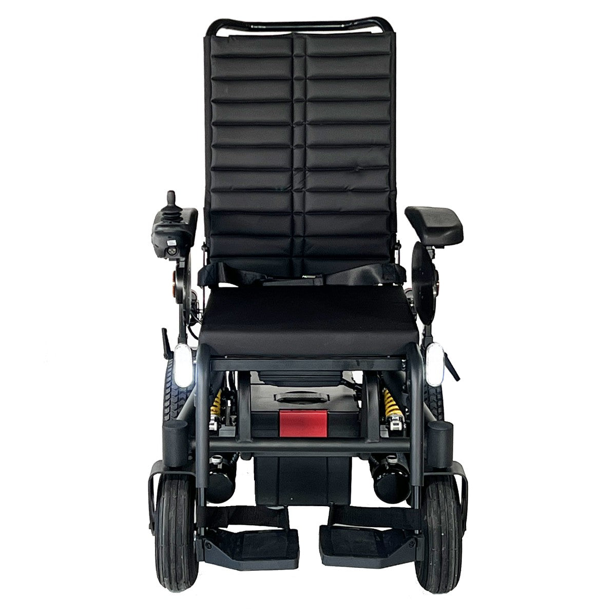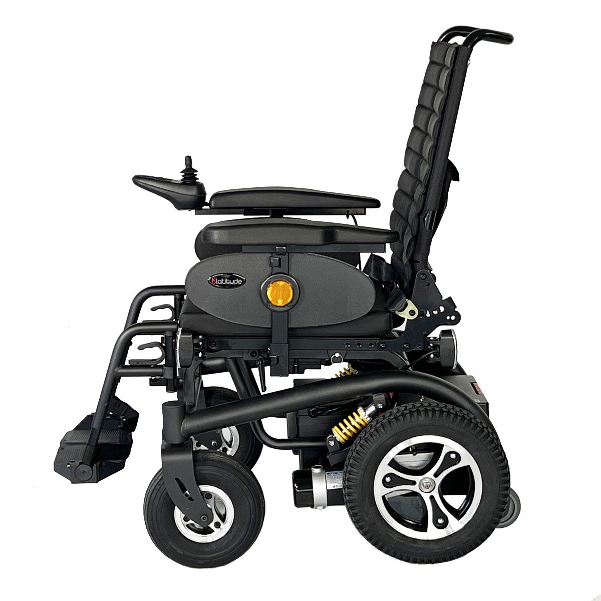 LATITUDE es una silla muy compacta, de reducidas dimensiones para entrar en ascensores o pasar por lugares estrechos. Cómoda para maniobrar en cualquier situación y fácil de conducir.