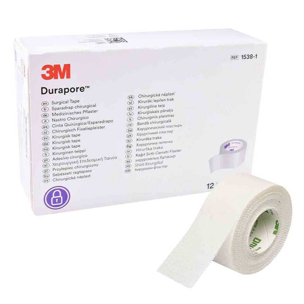 Esparadrapo Durapore hipoalergénico de seda sintética.