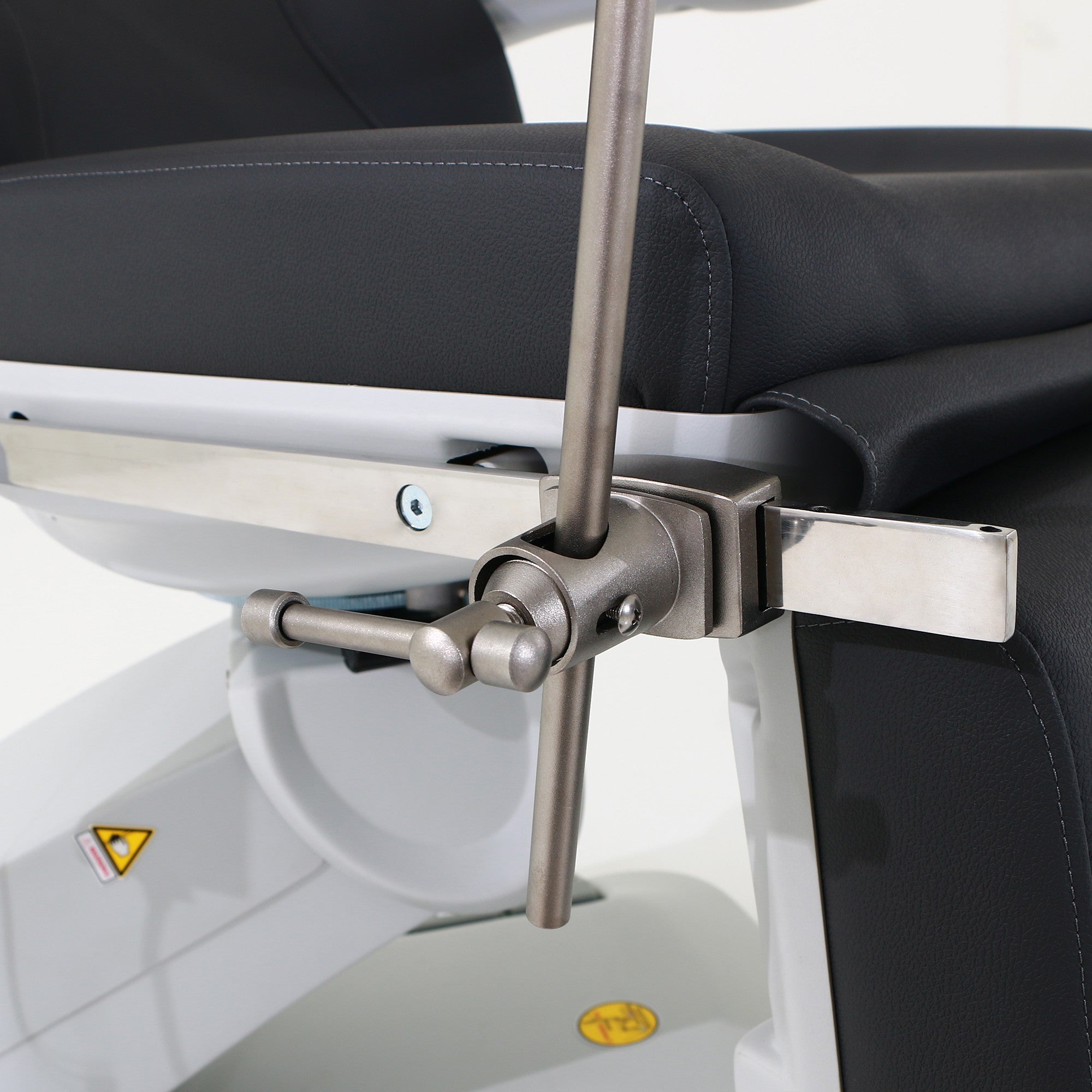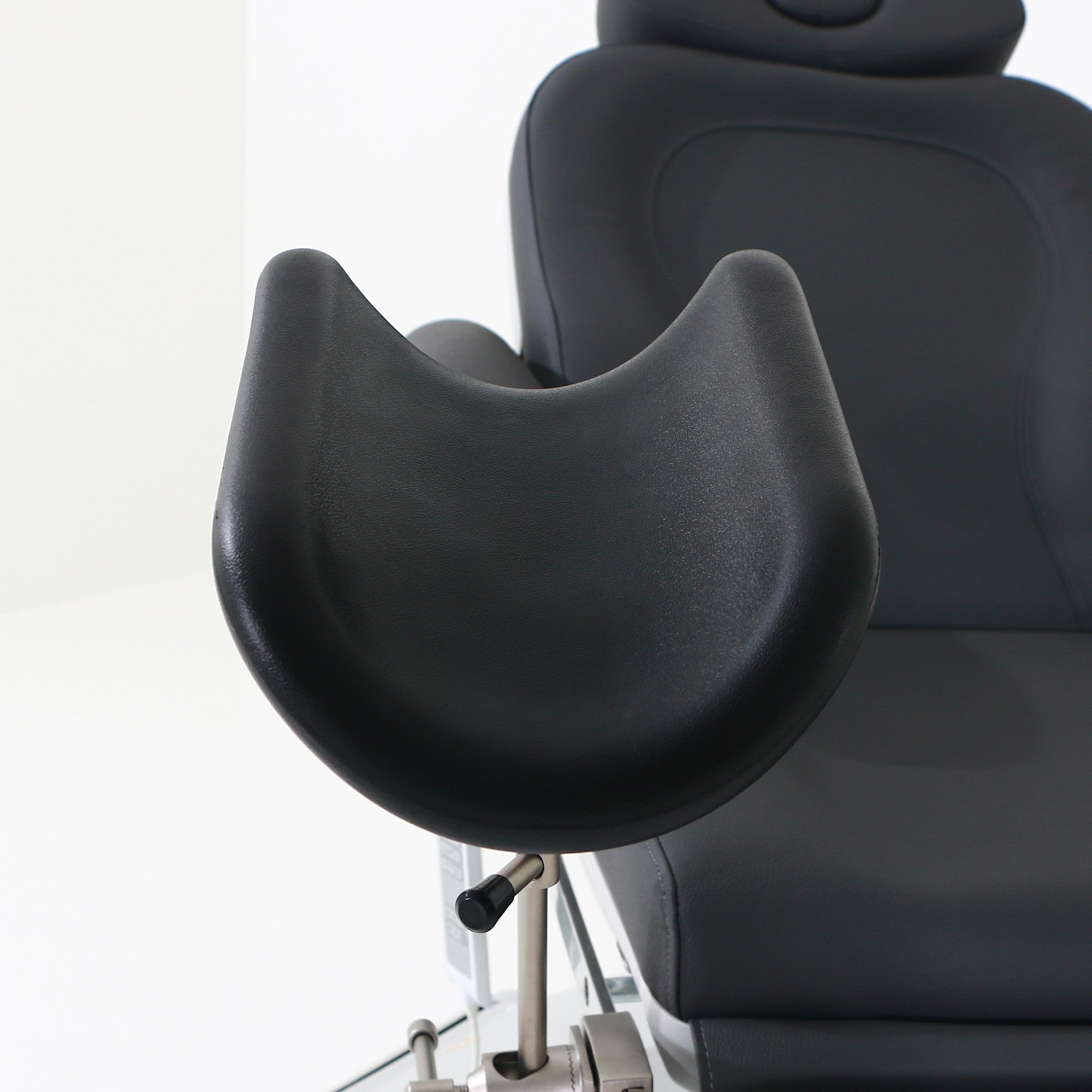 Sillón de reconocimiento ginecológico de alta gama con estructura muy estable, diseñada especialmente para optimizar el espacio de trabajo gracias a la rotación del sillón de 120°.