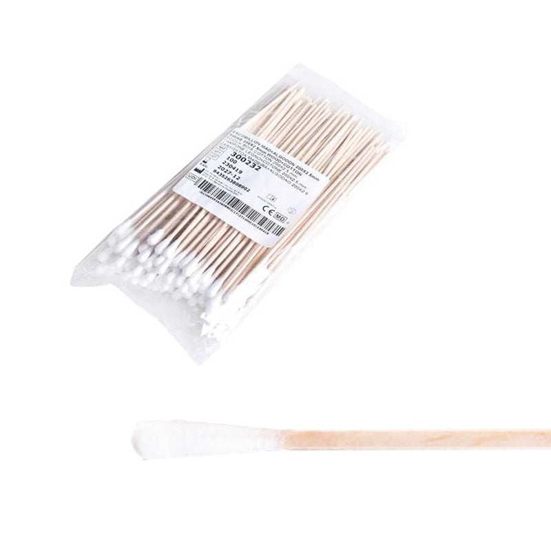 Escobillones con punta de algodón de 5 mm y soporte de madera.