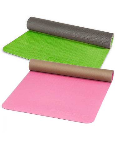 Colchoneta antideslizante. Contraste superior e inferior en 2 colores. Se puede enrollar y transportar para ahorrar espacio. Ultraligera, aproximadamente 0.6 kg de peso Medidas aprox. 172x60.5x0.4cm Disponible en fucsia/ marrón o lima/gris. Especial para la practica de yoga