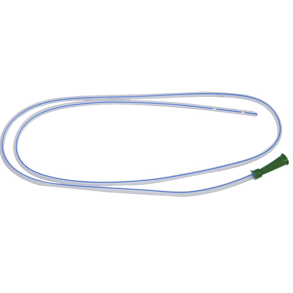 Sonda nasogástrica duodenal tipo Levin con línea radiopaca, extremo distal con punta cilíndrica abierta y 4 orificios laterales.
