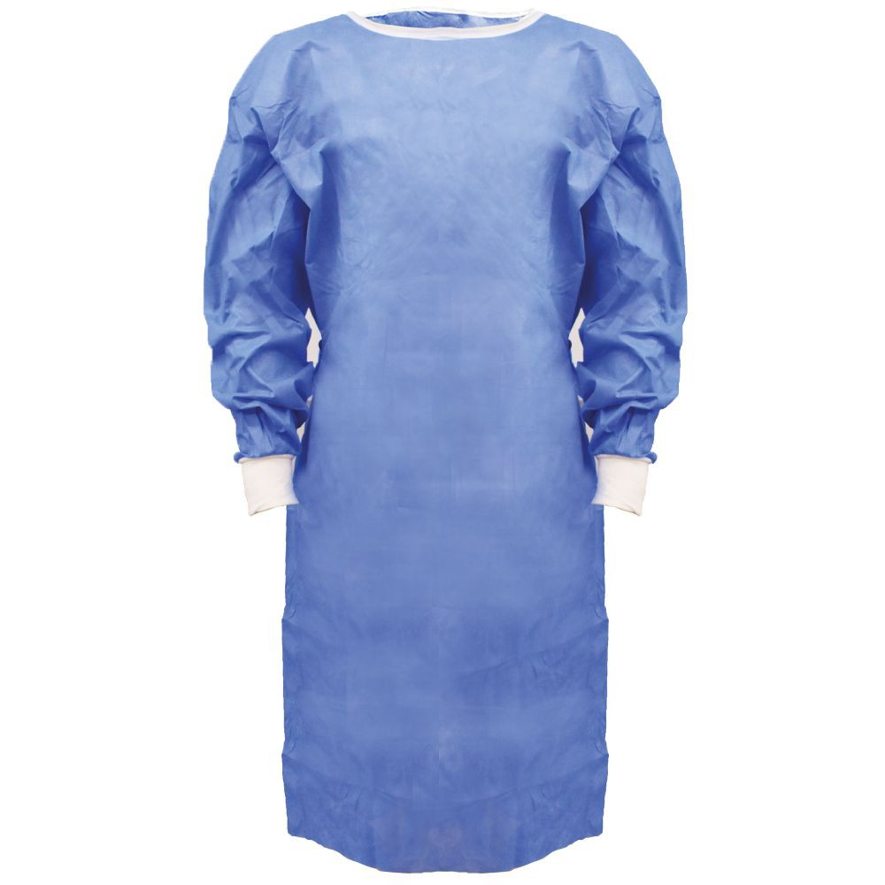 Bata quirúrgica reforzada desechable y estéril, fabricada en SMMS 35gr/m2 color azul.