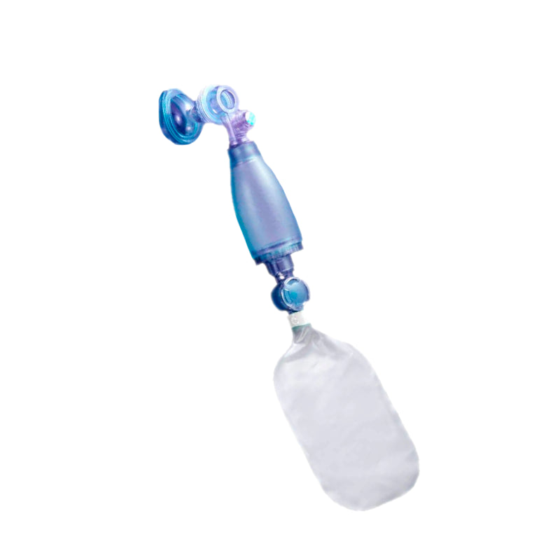 - Bolsa de ventilación: Posee una bolsa de ventilación que se comprime para administrar aire o oxígeno al paciente. Esta bolsa puede tener capacidades de volumen diferentes para adaptarse a las necesidades del paciente.