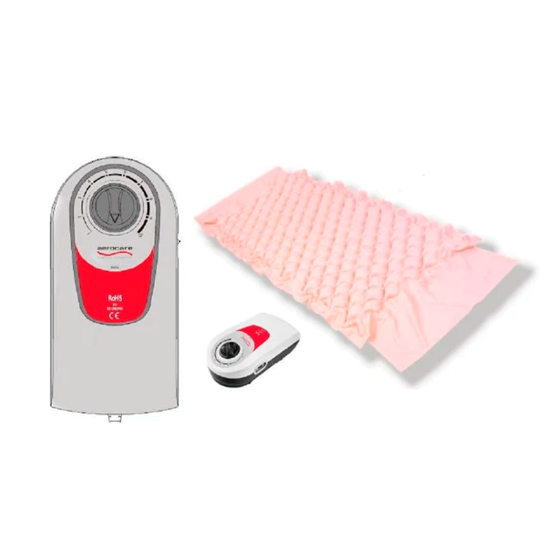 Colchón anti-escaras acompañado de compresor silencioso, con velocidad de salida de aire regulable, mediante un regulador de inflado.