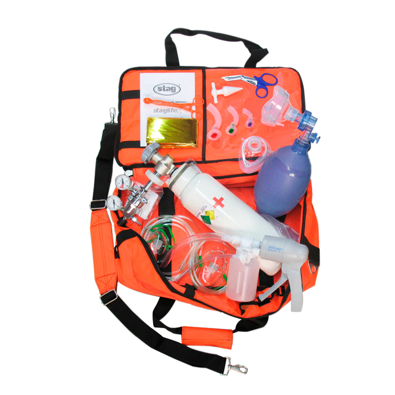 - Resucitador adulto esterilizable de silicona con mascarillas (nº 5 y nº 3).