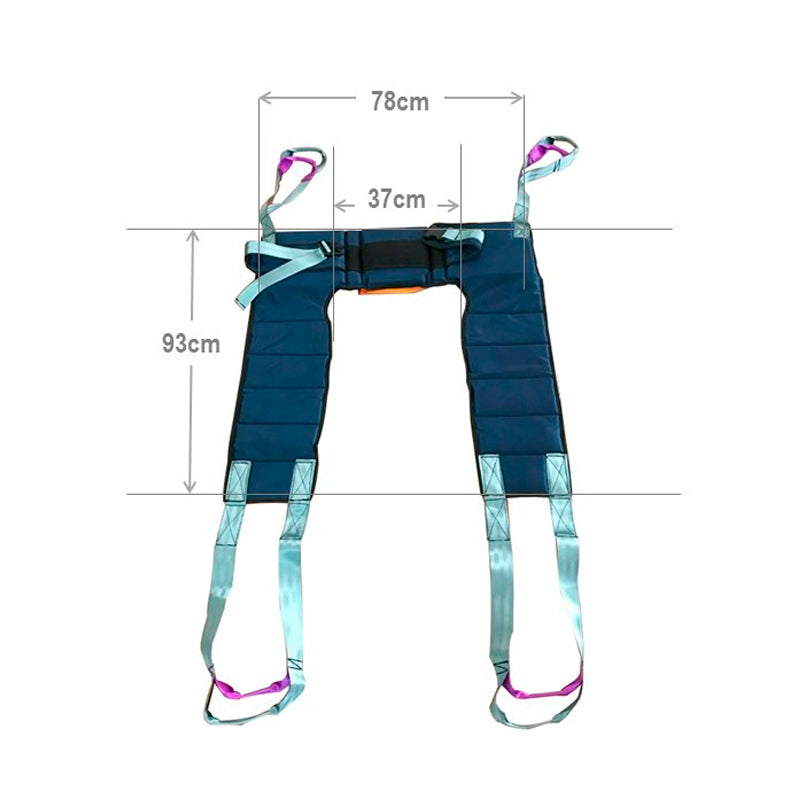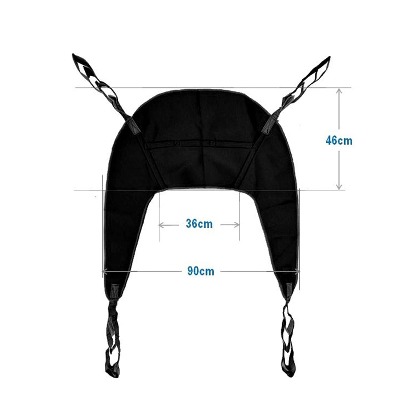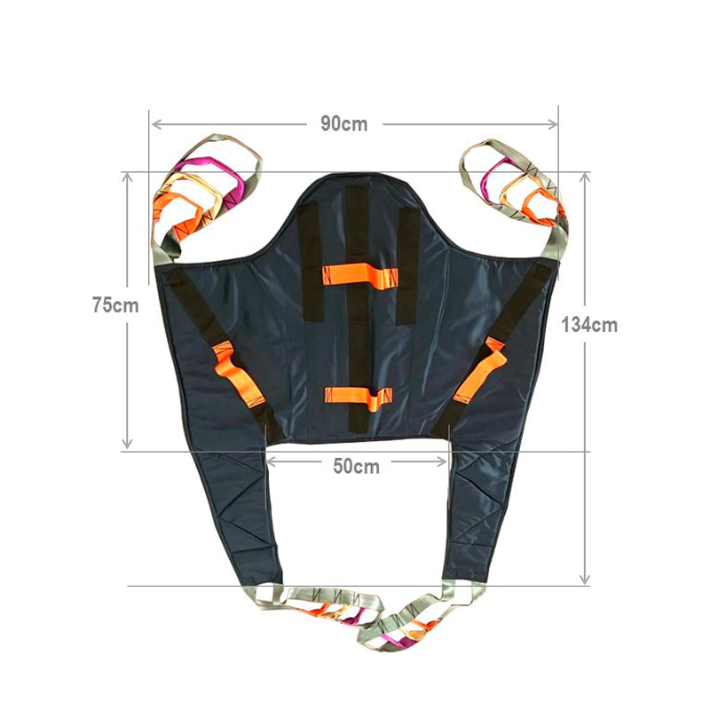 • Arnés o arnés de elevación: Es el dispositivo que se coloca alrededor del cuerpo del paciente para levantarlo de manera segura. Los arneses pueden variar en diseño según las necesidades del paciente y el tipo de transferencia que se realice.
