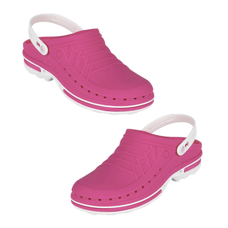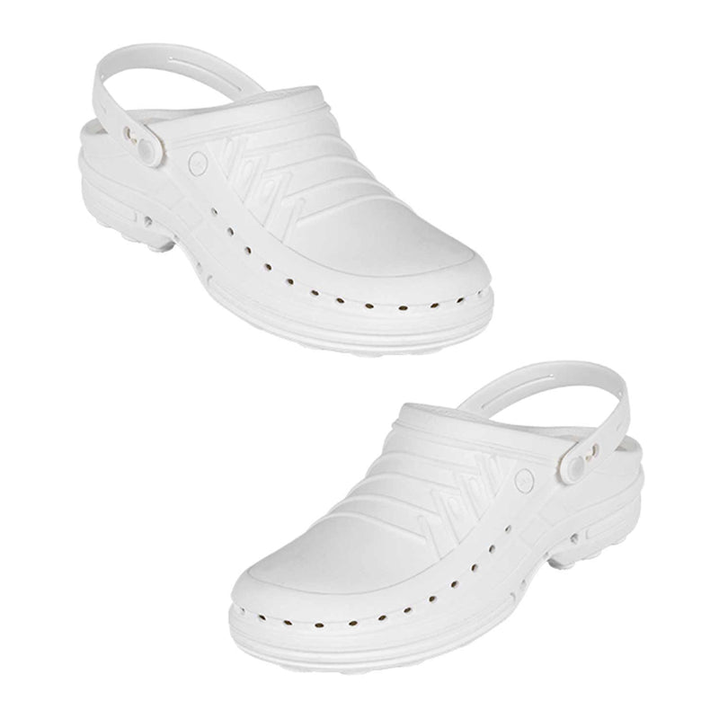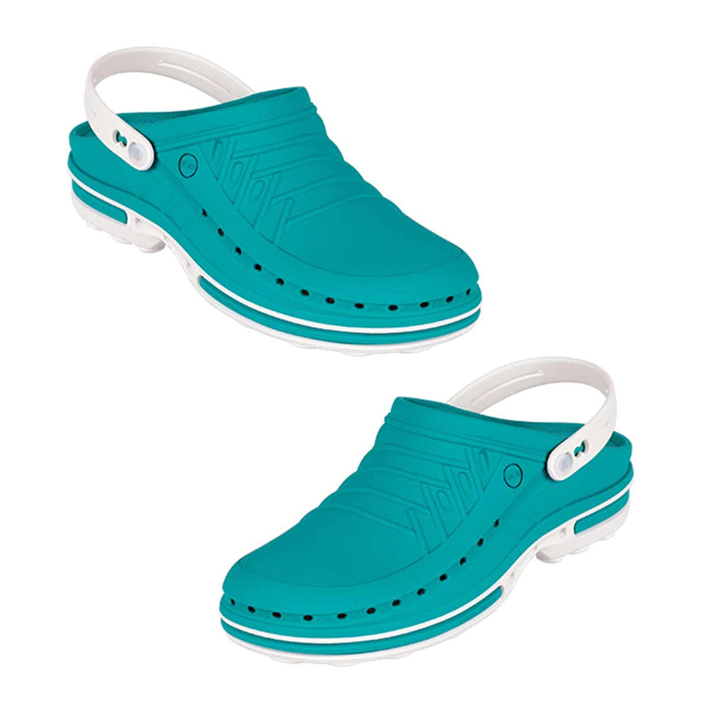 Al mismo tiempo, sus características antiestáticas mejoran la seguridad, la comodidad y la calidad y están garantizadas debido a su gran resistencia al desgaste Zueco bicolor fabricado íntegramente utilizando materiales poliméricos.