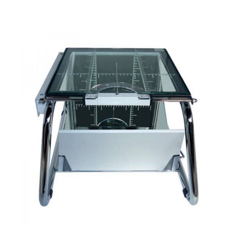 En el contexto de un podoscopio, un dispositivo utilizado en podología para examinar los pies, esta lámina de vidrio probablemente se utilice como superficie de apoyo donde el paciente coloca sus pies para su examen. La especificación del grosor del vidrio (5mm en este caso) es importante para garantizar la resistencia adecuada y la estabilidad del podoscopio durante el examen