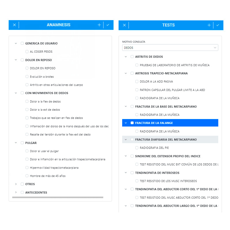 • Selecciona patologías y síntomas de listados preconfigurados o crea tu propio protocolo de trabajo como apoyo en tu razonamiento clínico.