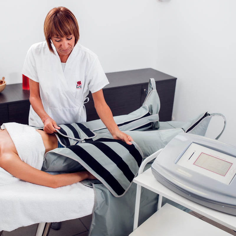 A través de presiones dosificadas sobre los tejidos, facilita el drenaje del líquido intersticial hacia los vasos linfáticos permitiendo luego su entrada en el árbol circulatorio y activando su recorrido natural. La presión no se ejerce simultáneamente sobre toda la superficie, sino de acuerdo con una secuencia centrípeta que imita el masaje.