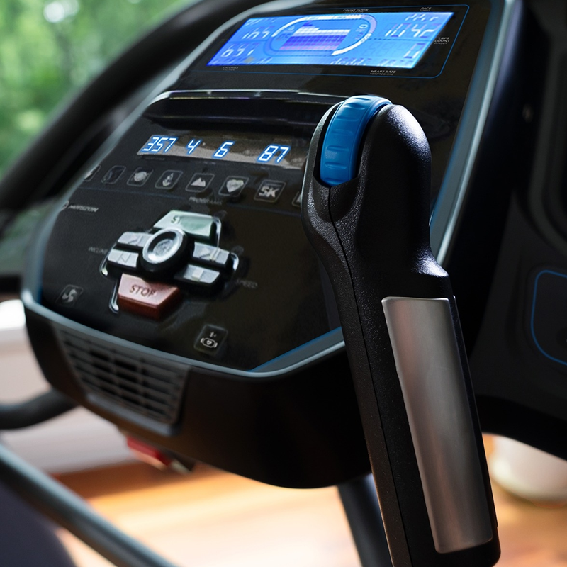 - EXTRAS Ventilador, controles rápidos de velocidad e inclinación, teclas de intervalo personalizadas, modo de ahorro de energía, portabotellas, toma de entrada/salida de audio, soporte para tablet/lectura