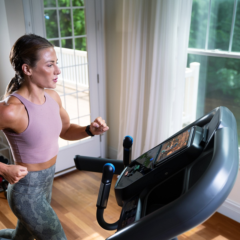 Una superficie de carrera extragrande, inclinación ajustable y un potente motor de 3,5 CV con gran capacidad de respuesta te permiten superar tus límites en los programas HIIT.