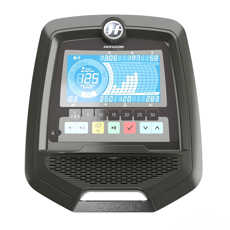 - APLICACIONES DE CONSOLA Tiempo, Distancia, Velocidad, Calorías, Ritmo cardíaco, nivel de resistencia, vatios, RPM, Cardio Compass HR Display, Gráfico de potencia y perfil