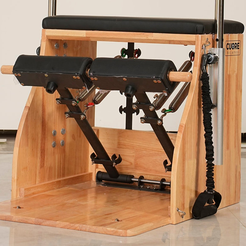 La Silla de Pilates es un equipo compacto diseñado para proporcionar resistencia y apoyo durante los ejercicios.