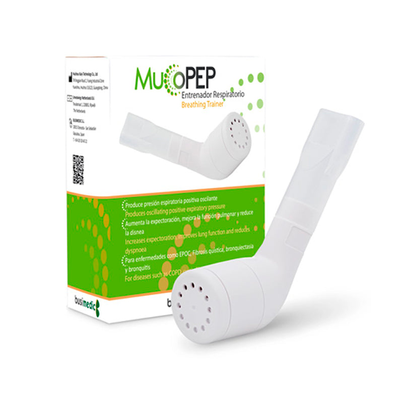 El MucoPEP es un incentivador respiratorio que facilita la eliminación del moco acumulado en las vías respiratorias. Al realizar una espiración mantenida, produce una vibración que transmite un efecto de cizallamiento sobre la pared bronquial.