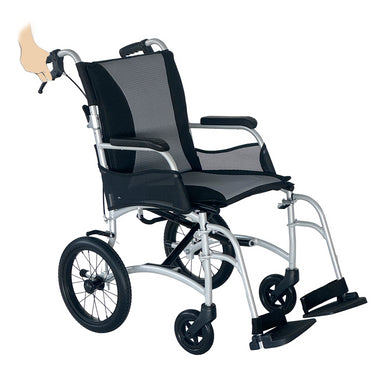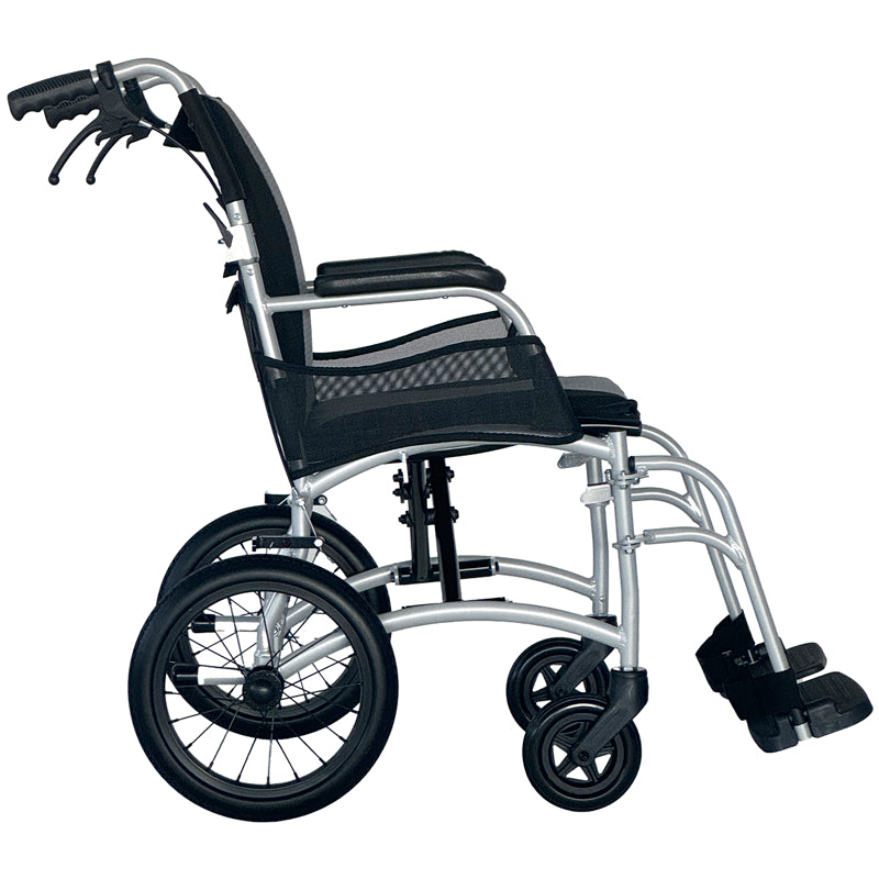 Plegable y de aluminio ultraligero, con solo 9 kg, es la silla más ligera y compacta de nuestro portfolio. Diseñada pensando también en los cuidadores que deben cargar con la silla, por ejemplo, al meterla en el maletero. Equipada con frenos de acompañante para mayor comodidad del cuidador durante la marcha y que no tiene que agacharse para frenar la silla.