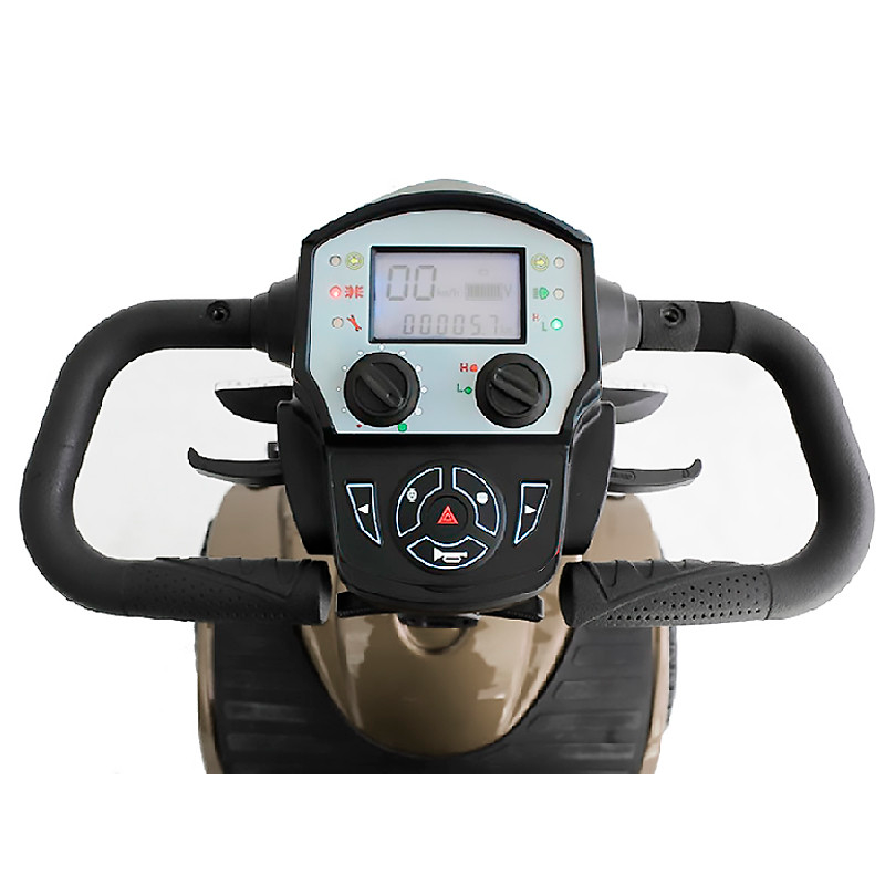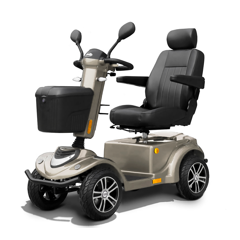 El scooter Pegasus dispone 4 ruedas neumáticas de 12" de diámetro, equipado con amortiguadores delanteros y traseros.