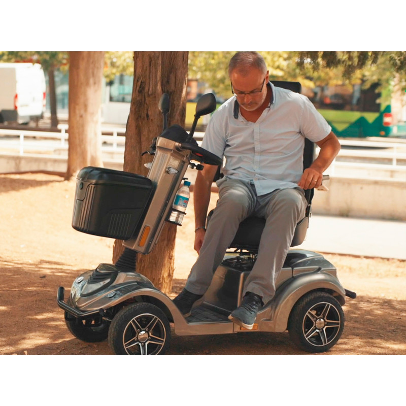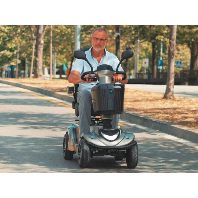 Con una velocidad máxima de 15 Km/h. Dispone de luces con intermitentes, luz de freno y volante ergonómico. Es un scooter muy versátil para todo tipo de situaciones.