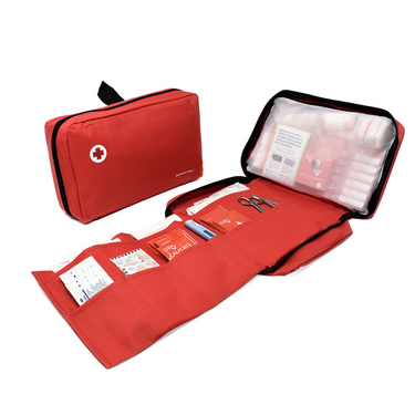 - Apertura y cierre mediante cremallera exterior que recorre todo el perímetro del botiquí n permitiendo una apertura total del neceser para mayor facilidad de manejo.