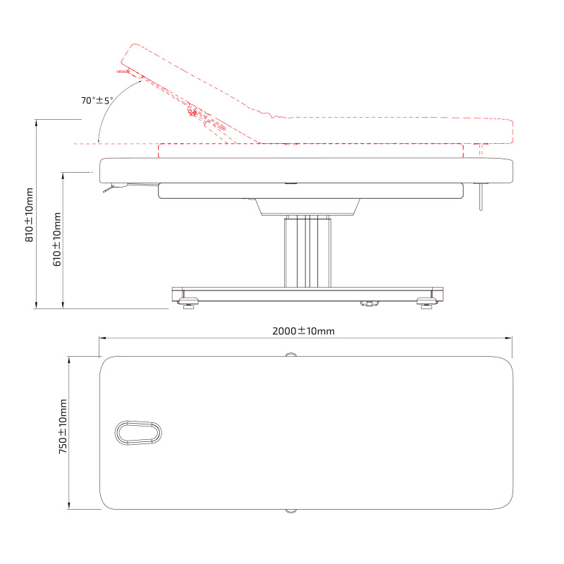 - Tamaño del producto: 2000(L)x750(W)x610-810(H)+10mm