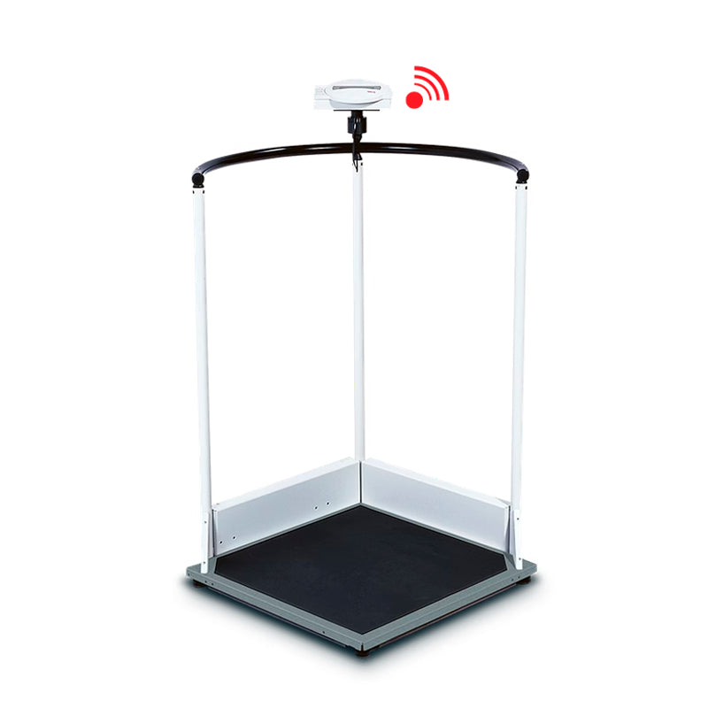 Como el pasamanos también forma parte del área de pesaje, los resultados de pesaje siguen siendo absolutamente confiables aún cuando el paciente se apoye en ella.