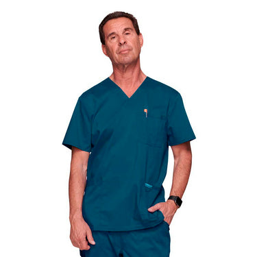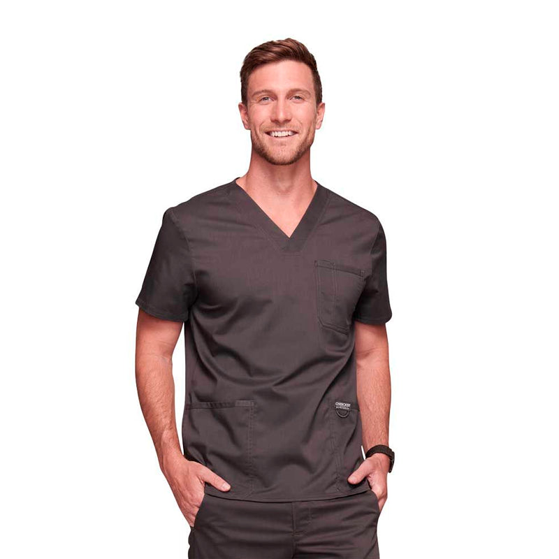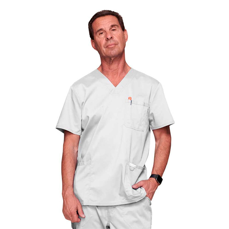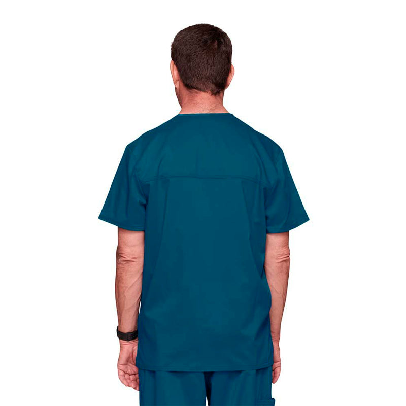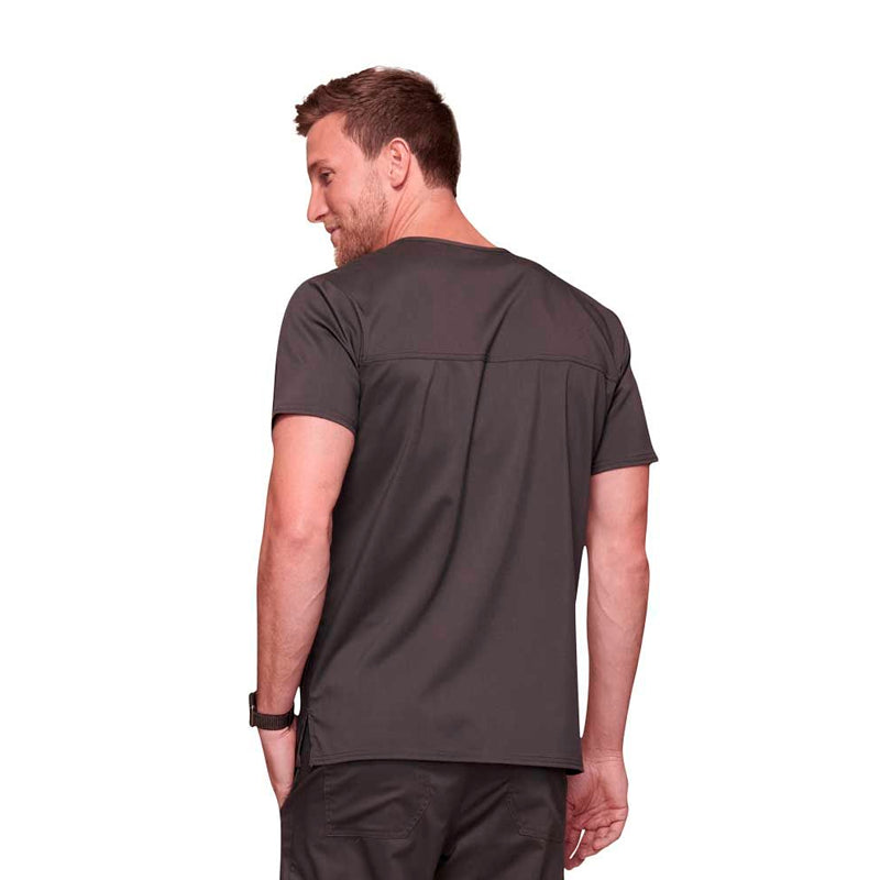 - Un bolsillo de parche en el pecho con ranura para bolígrafo