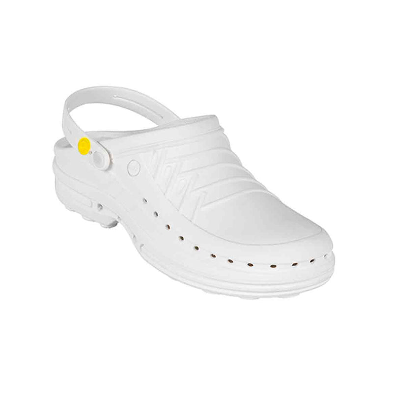 Plantilla confort del WOCK clog: La plantilla ha sido diseñada para garantizar la máxima absorción de los impactos resultantes de caminar, lo que reduce significativamente el cansancio debido a estar muchas horas de pie. Soft PU + cuero natural. Ligera. Flexible. Absorción de impactos.