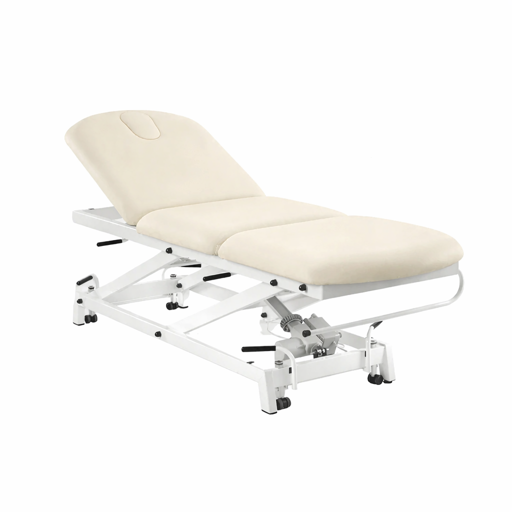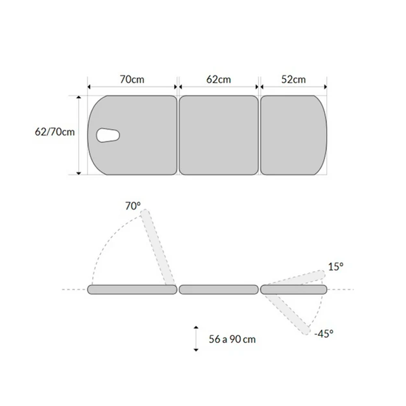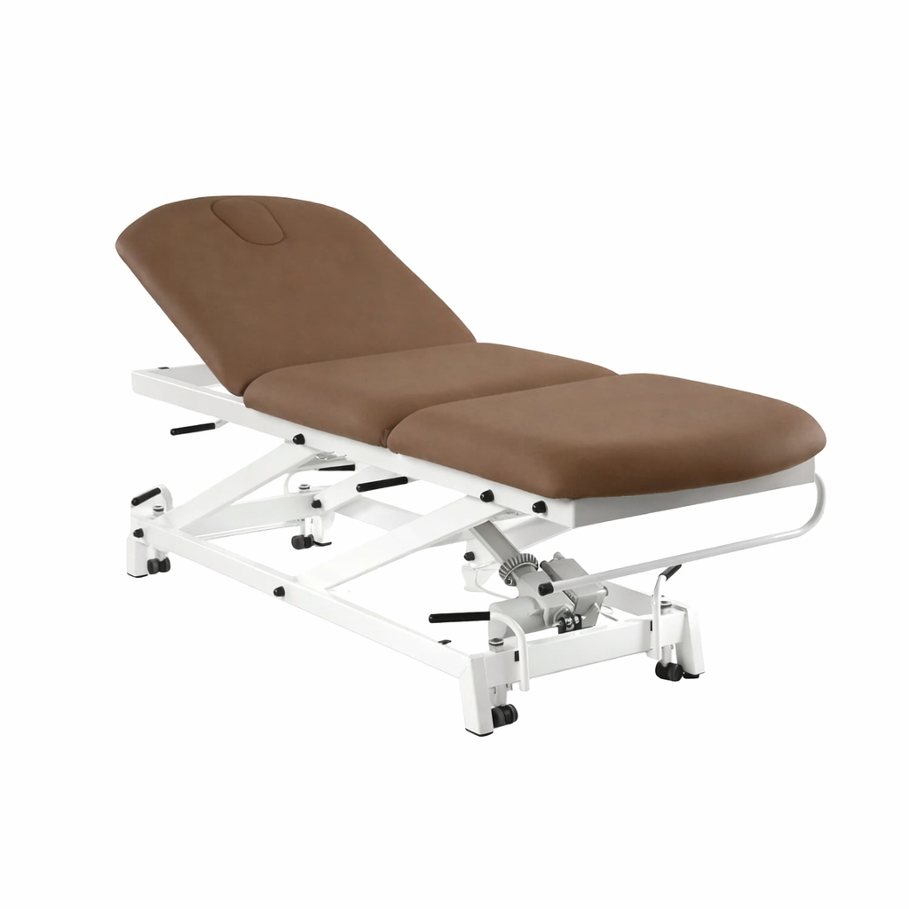 Camilla eléctrica de reconocimiento de 3 cuerpos con pliegue central FisioConfort.