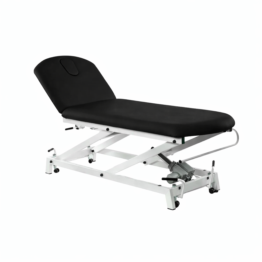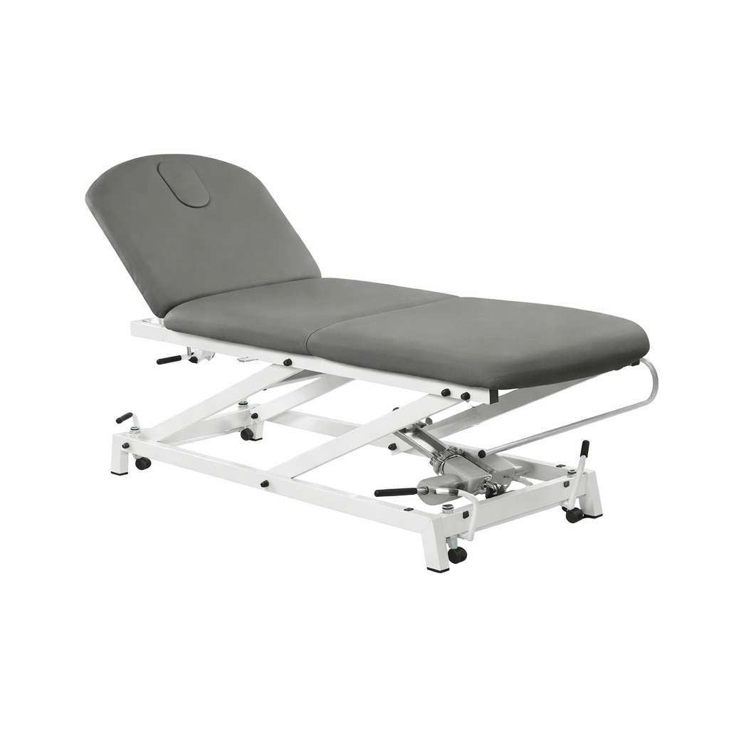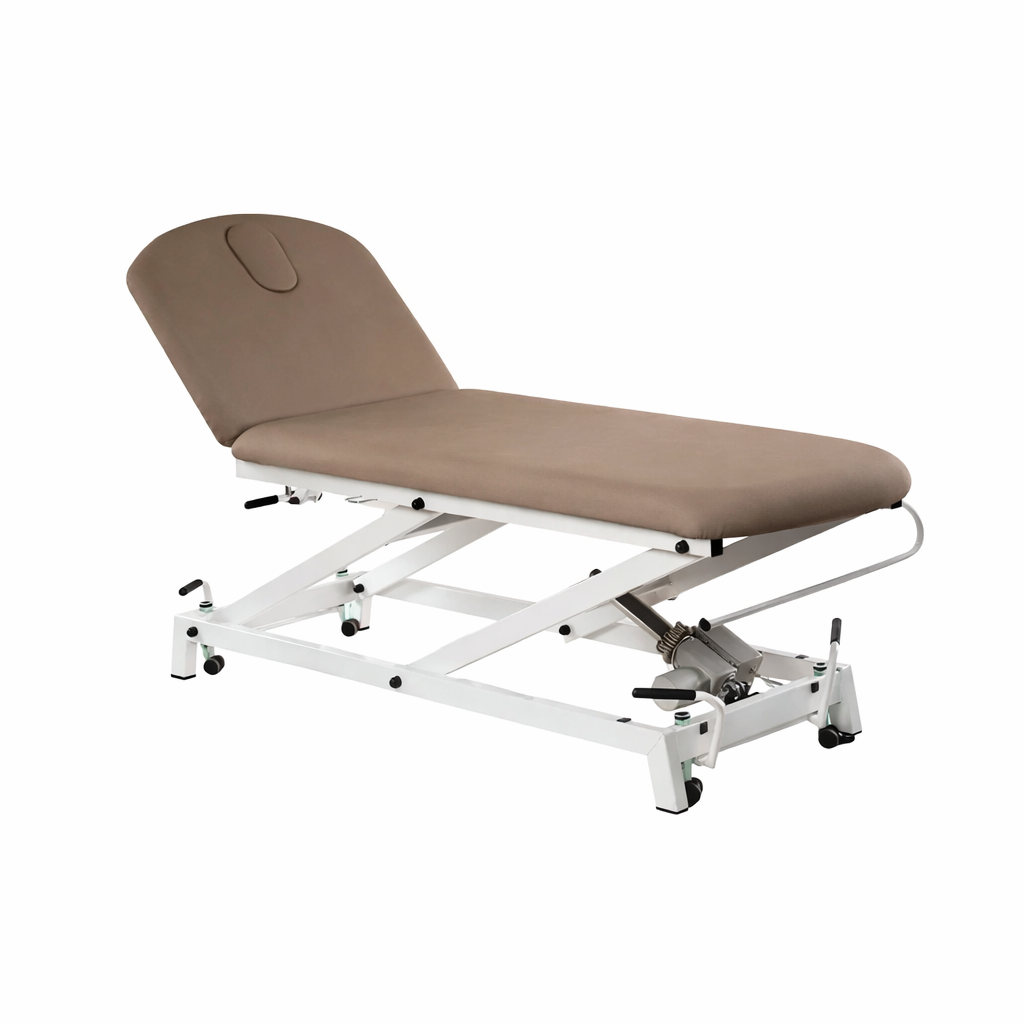 Camilla hidráulica de reconocimiento de 2 cuerpos con respaldo reclinable en negativo FisioConfort.